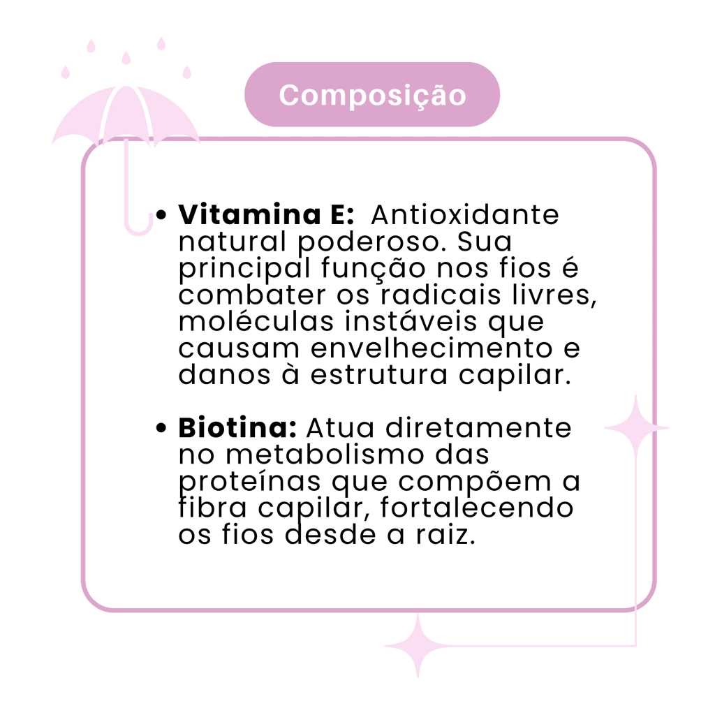 • Brilho e Maciez: Deixa os fios mais brilhantes e suaves ao toque.