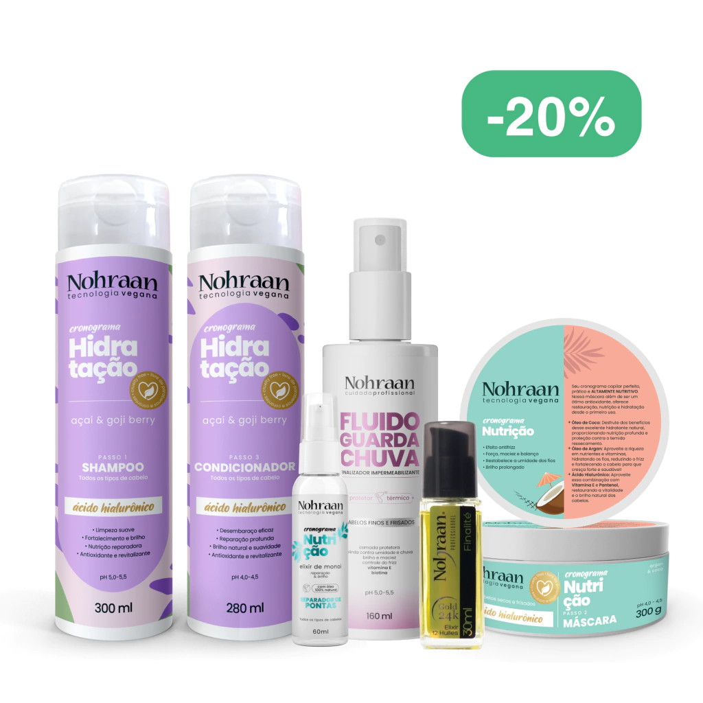 Experimente o poder da Linha Completa Antifrizz, um kit desenvolvido para cabelos que precisam de hidratação profunda, controle do frizz e brilho intenso. Com ingredientes poderosos como Extrato de Açaí, Goji Berry, Óleo de Argan e Ácido Hialurônico, esse kit proporciona nutrição, proteção e definição para cabelos mais saudáveis, disciplinados e sem frizz, mesmo em dias úmidos ou chuvosos.