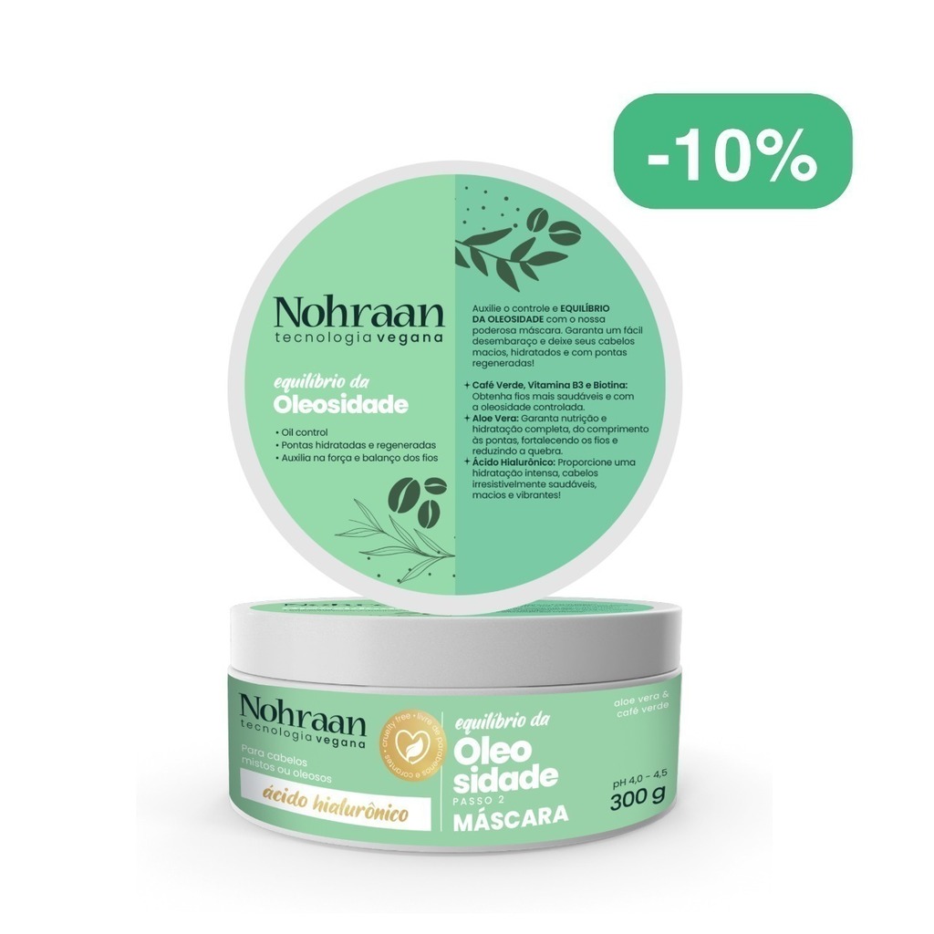 Desfrute de um cabelo equilibrado e saudável com a Máscara Equilíbrio da Oleosidade da Nohraan Veg. Controle a oleosidade e deixe seus fios macios e regenerados!